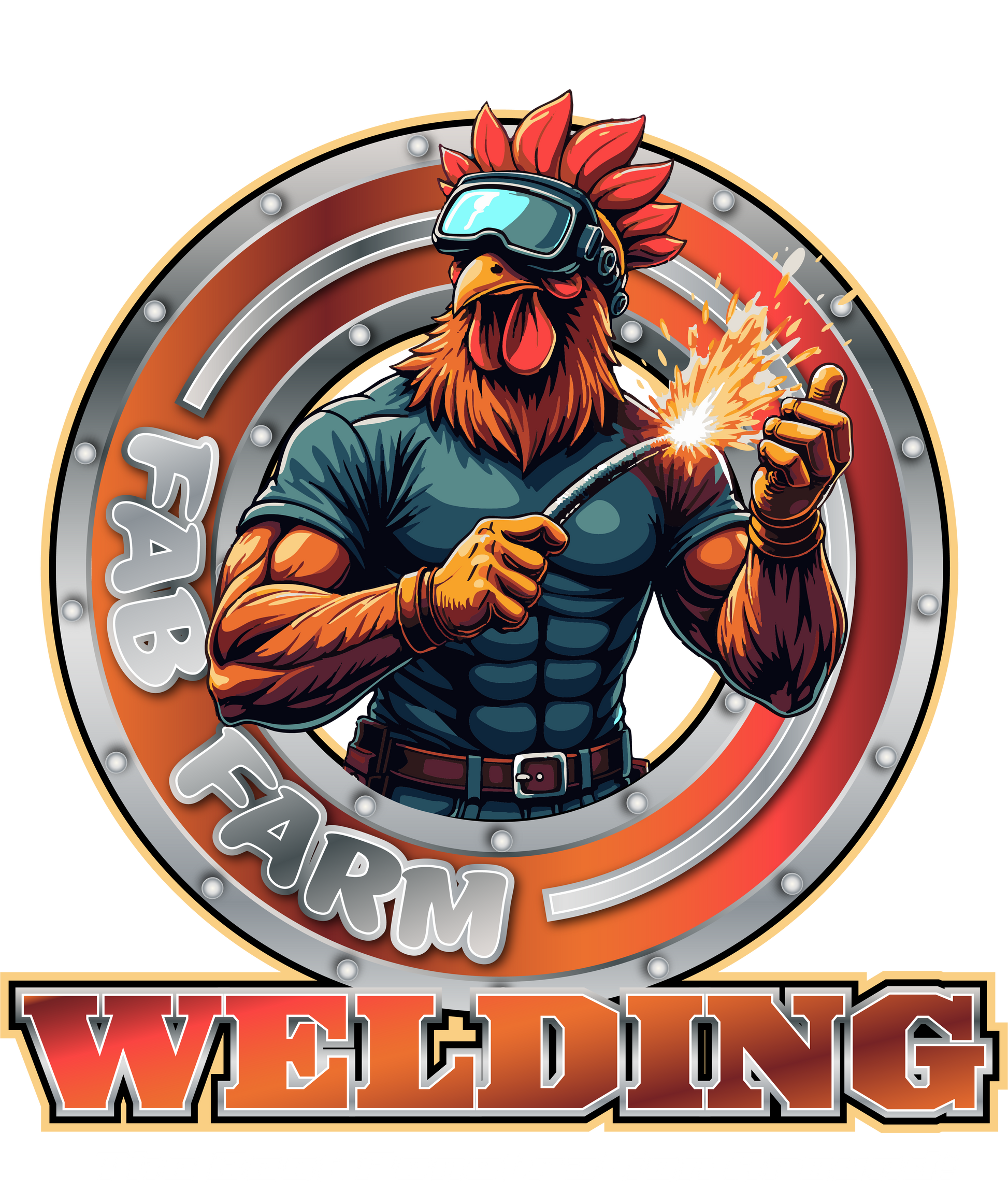 Turn up the heat in this one-of-a-kind graphic tee from Fab Farm Welding! Featuring a jacked-up rooster welder mid-spark, this shirt brings together muscle, metal, and humor in true fab fashion. With bold red, orange, and steel tones, the design pops against the black background—making it a standout both in the shop and out on the town.