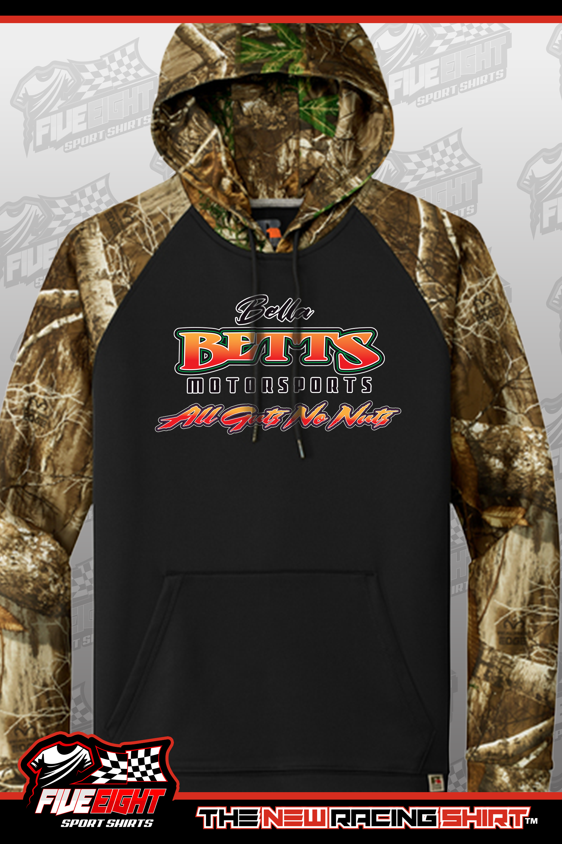 Featuring the official Bella Betts Motorsports logo, this hoodie combines Realtree camo design with Russell’s trusted quality — soft, durable, and ready for anything.